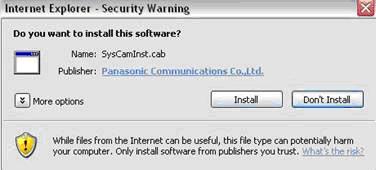 The first time you access the camera; it is going to take a few seconds to connect and then the camera will need to install a piece of software called SysCamInst.cab (see screenshot below) on your computer. Please make sure you say “allow” and “install” when prompted. This will be a one time setup requirement. Please make sure you are accessing the camera with a windows PC and Internet Explorer, it works the best with these pieces of software.